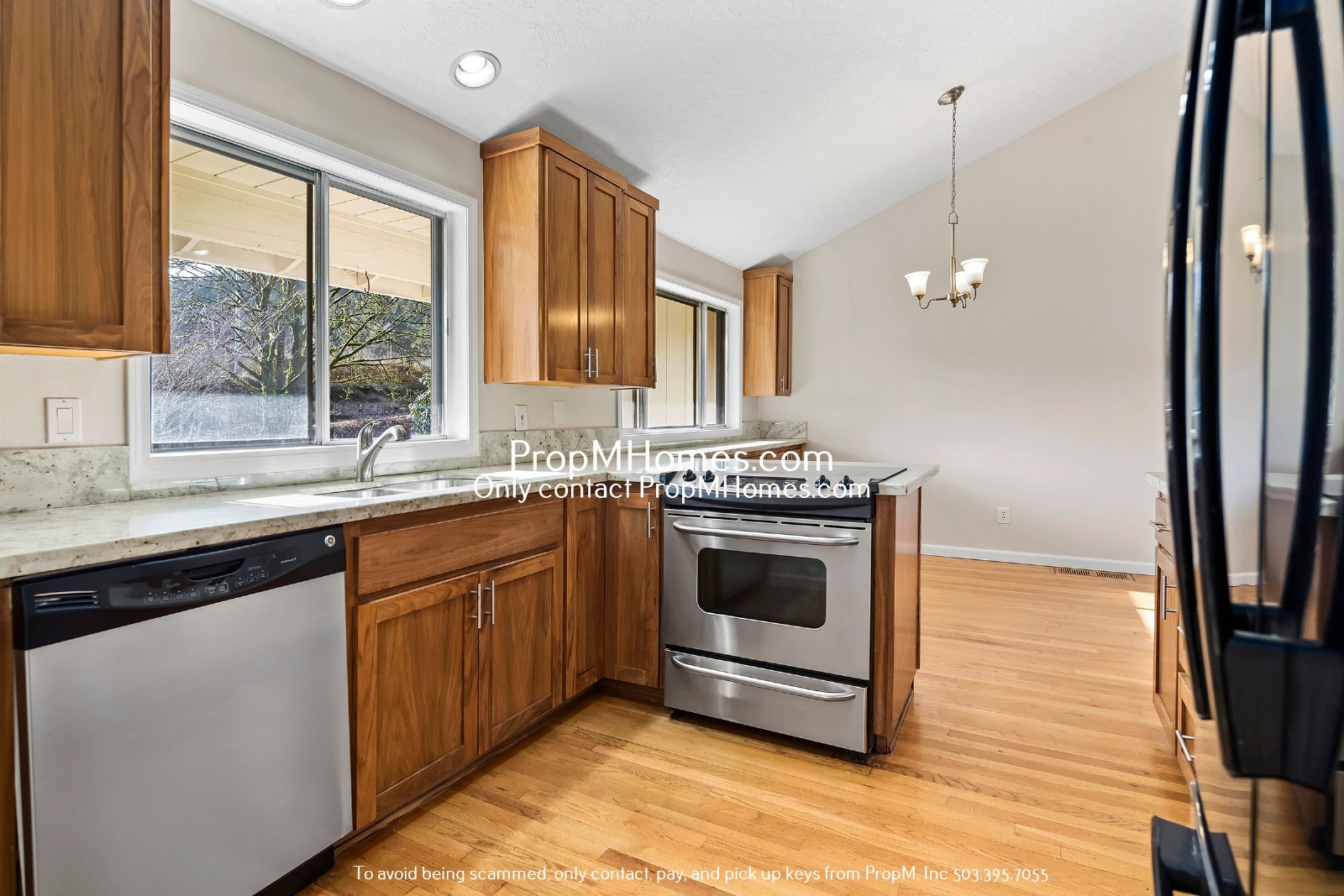 -Appliances include refrigerator, electric stove/oven, and dishwasher