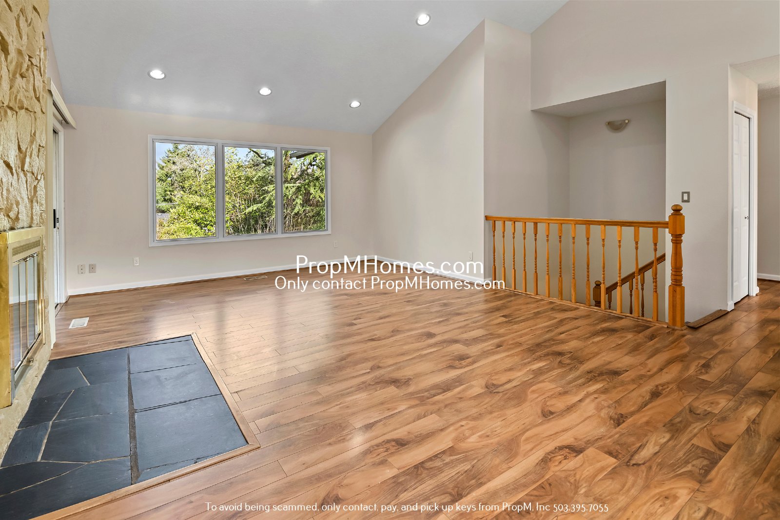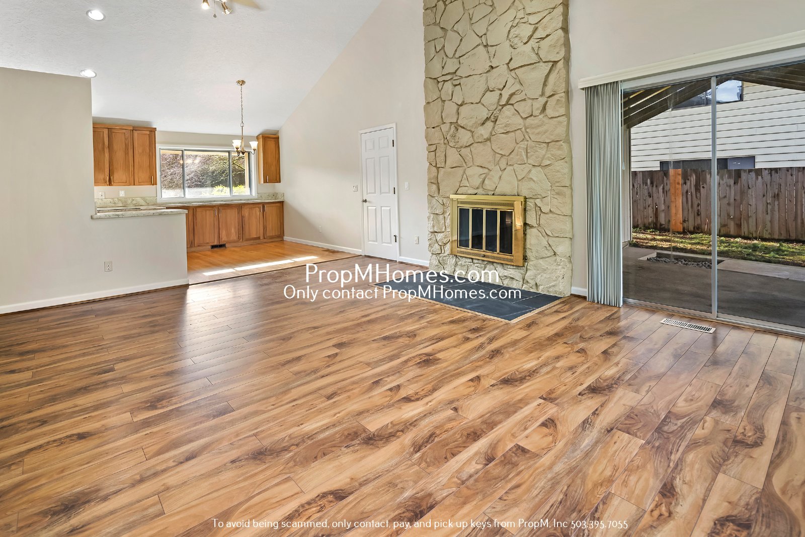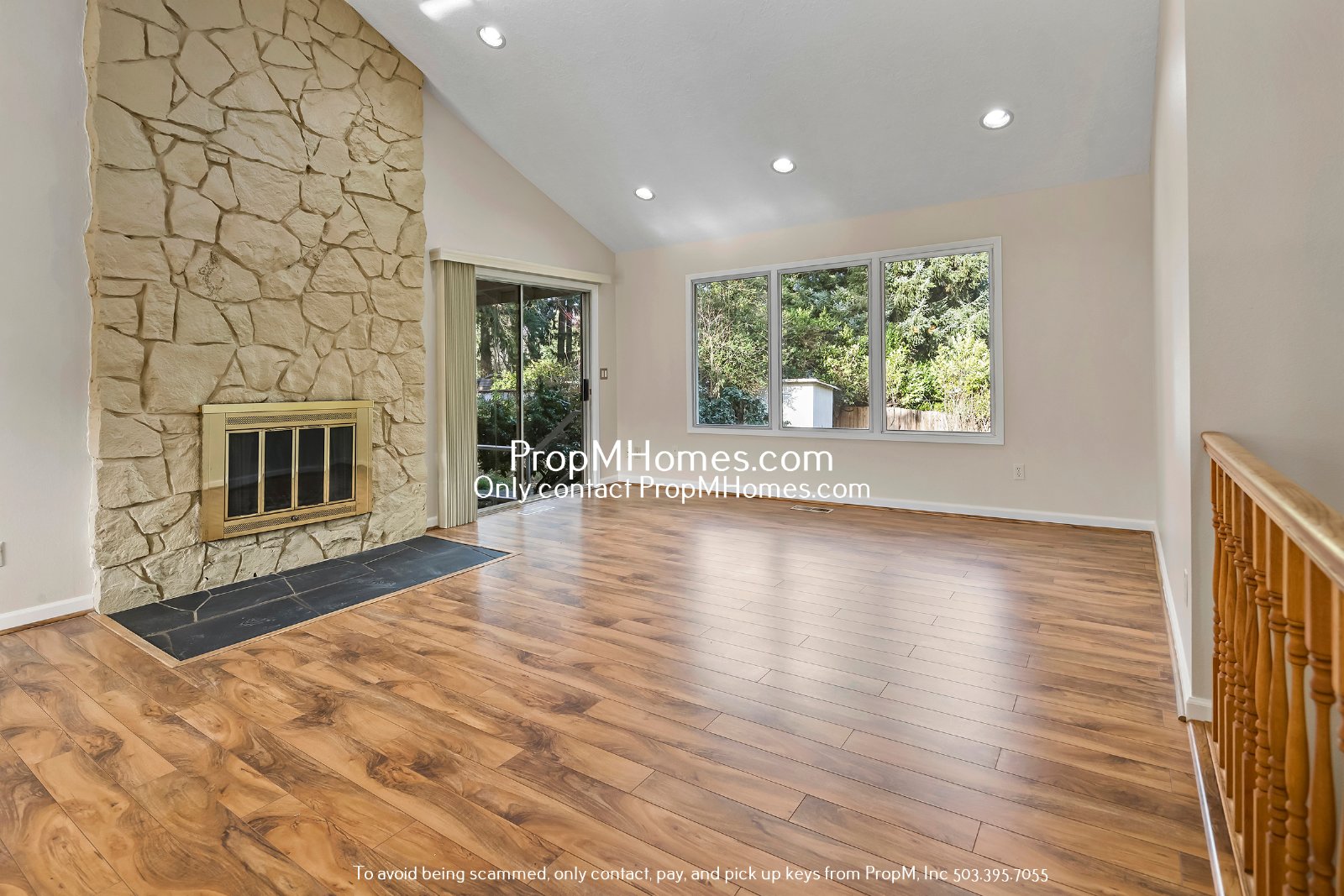 -Vaulted ceilings, gorgeous hardwood floors, and a floor-to-ceiling stone fireplace