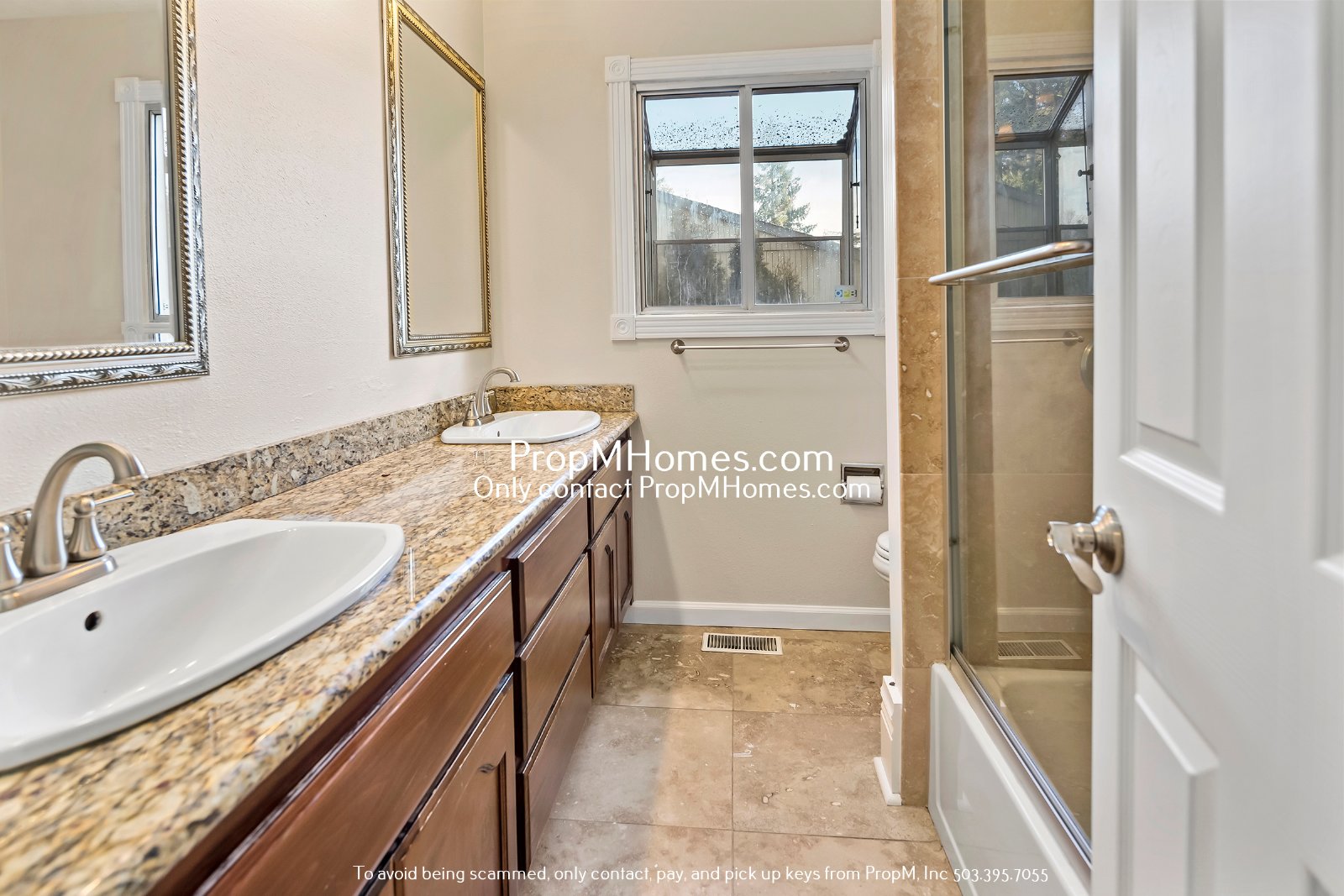-Three full bathrooms with dual vanities and updated tile