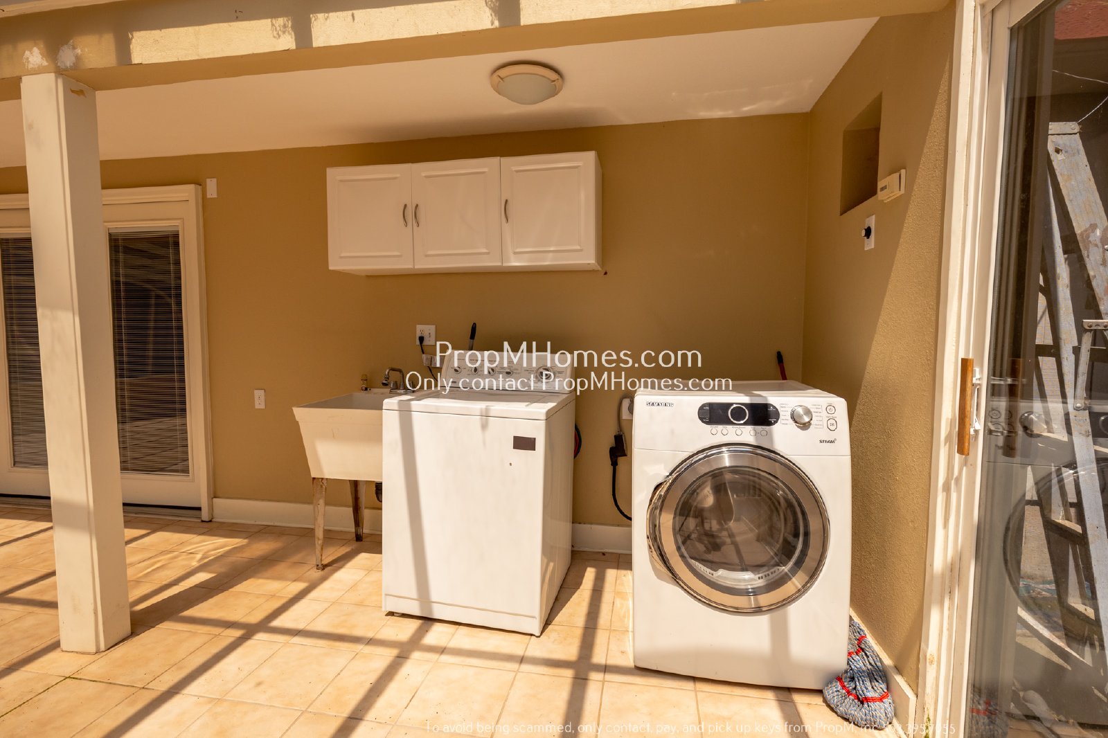 -Gorgeous sunroom with washer, dryer, and utility sink