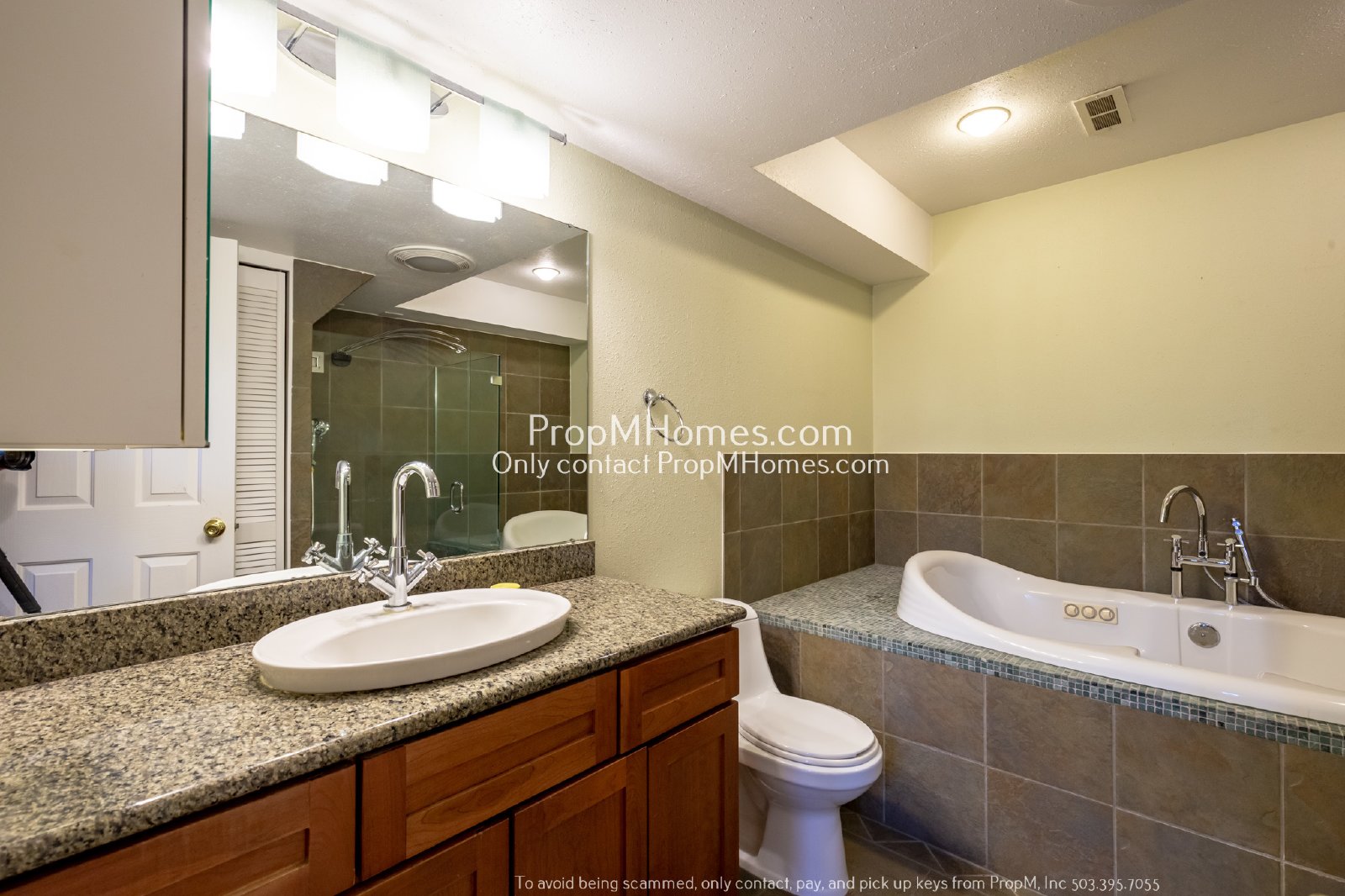 -Lower-level bathroom features jetted soaking tub and standing shower