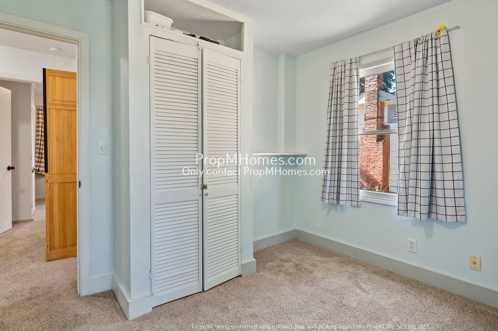 -Two carpeted bedrooms on the main floor with tall windows and large closets