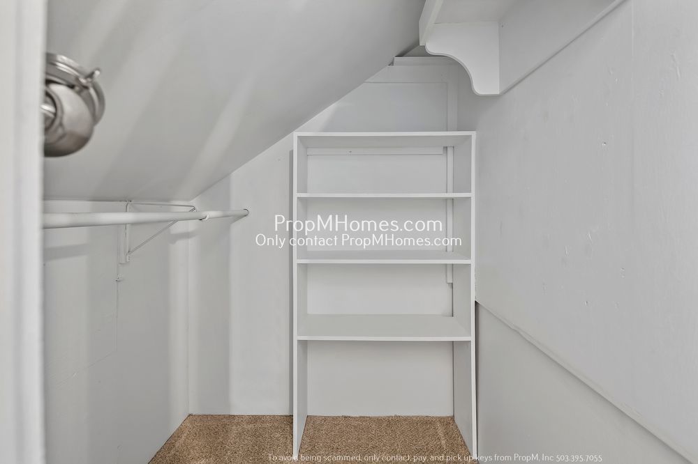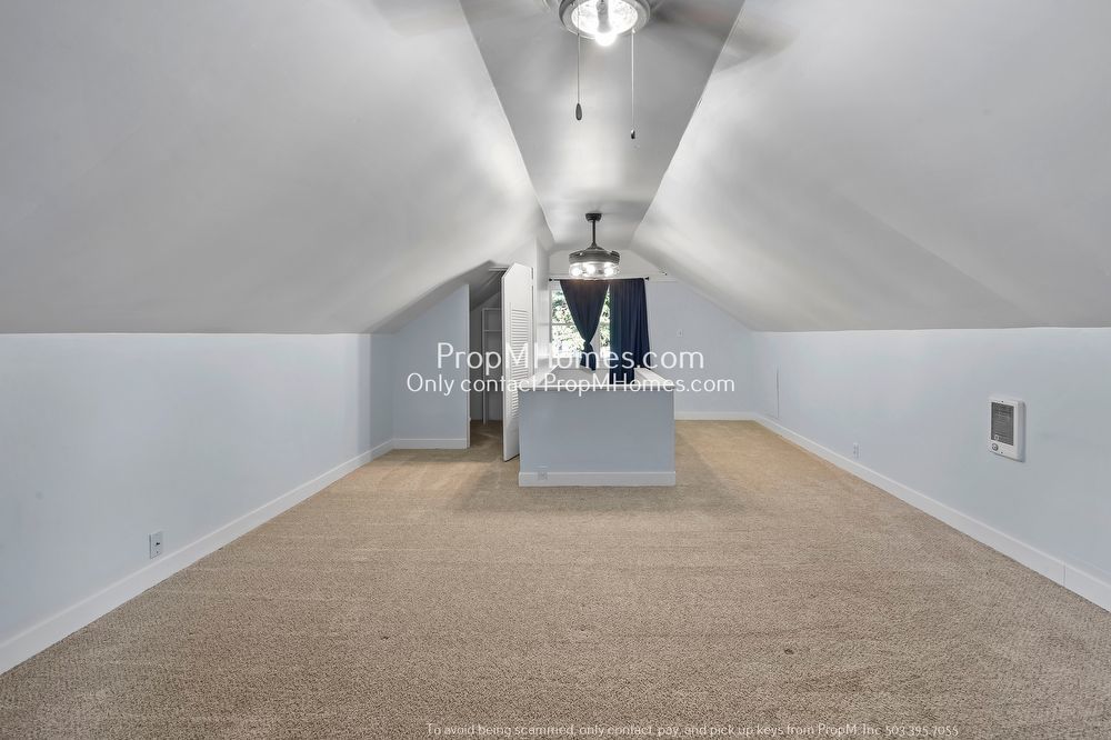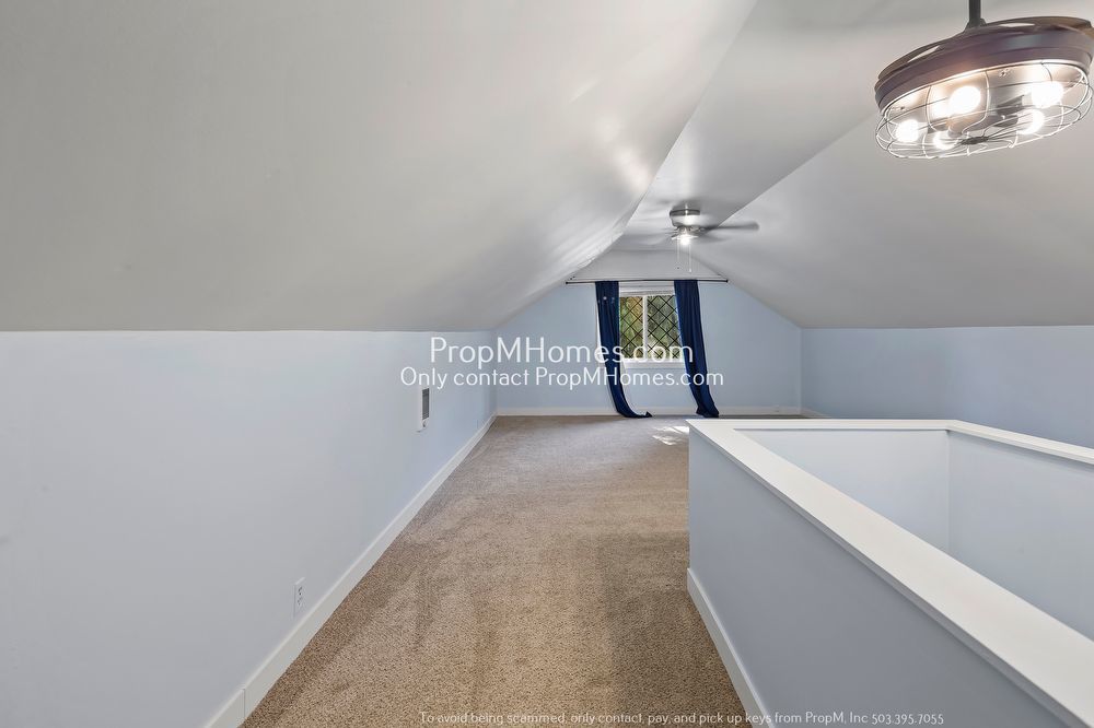 -Upstairs room with vaulted ceiling and generous storage—ideal for a bedroom, office, or creative space