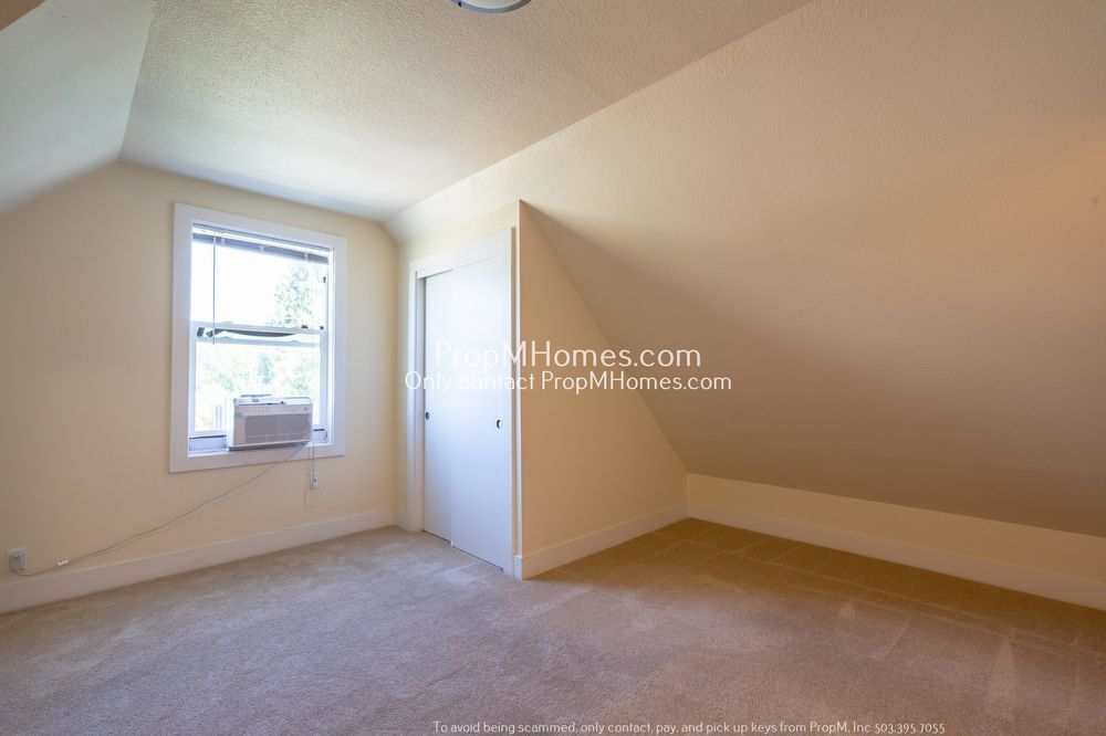 -Upstairs bedrooms feature carpet, closets, overhead lighting, and window A/C units