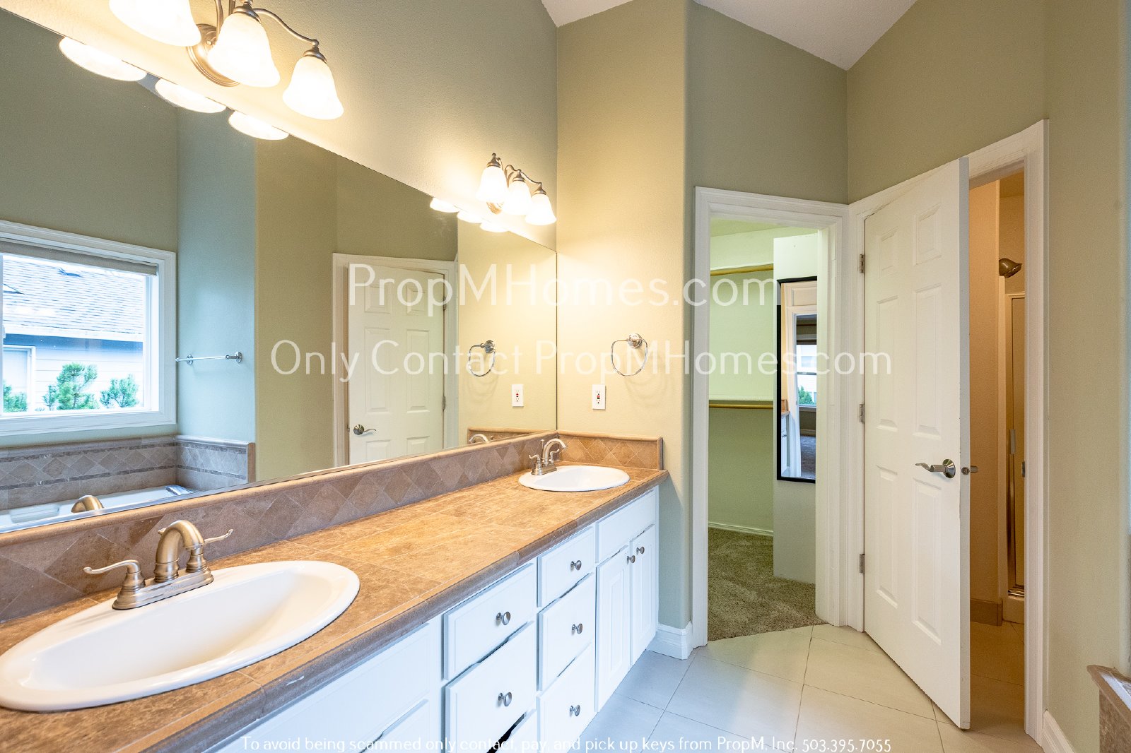 Primary suite with soaking tub, walk-in shower, dual sinks, and large walk-in closet