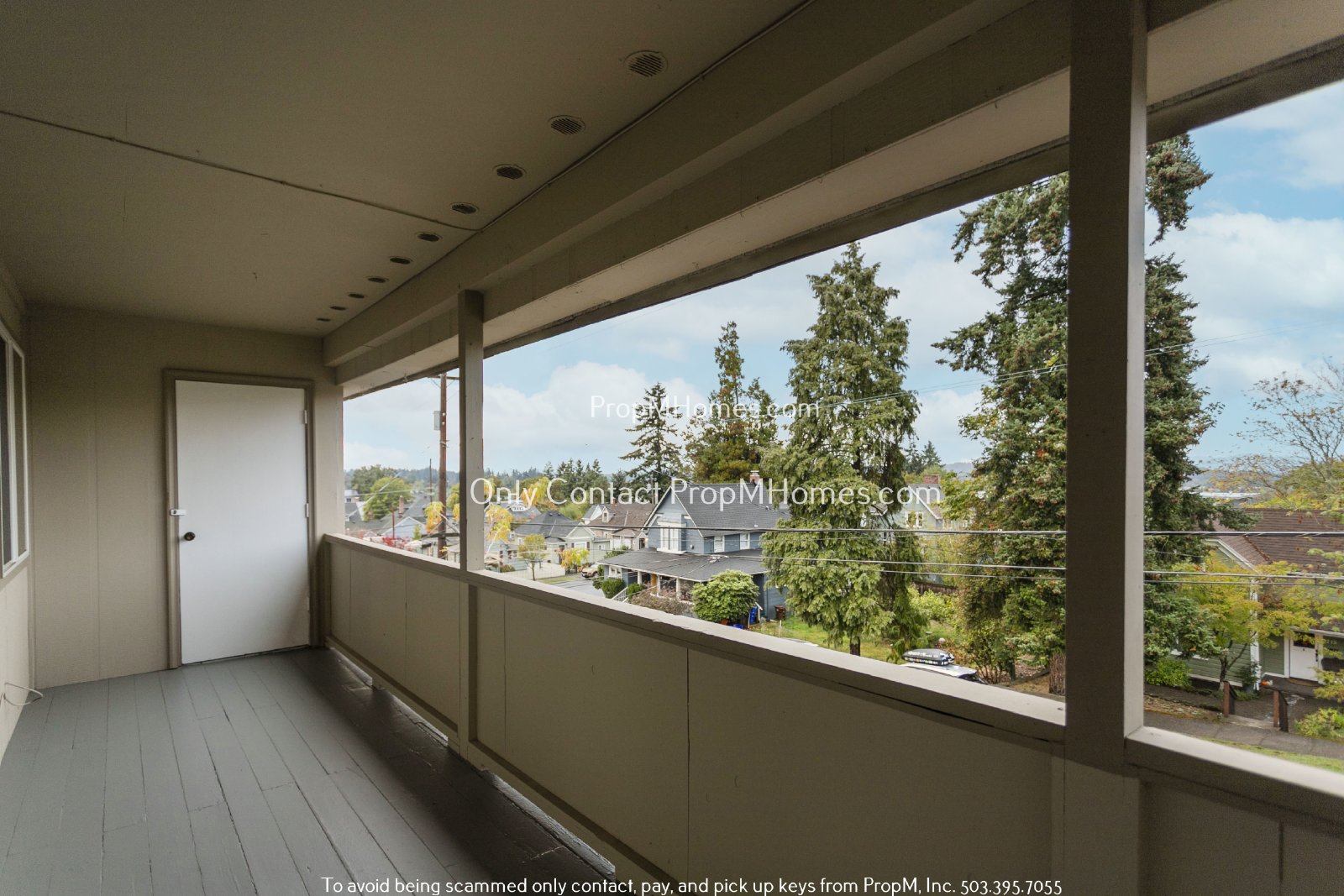 -Spacious balcony with city, tree, and peek-a-boo mountain views