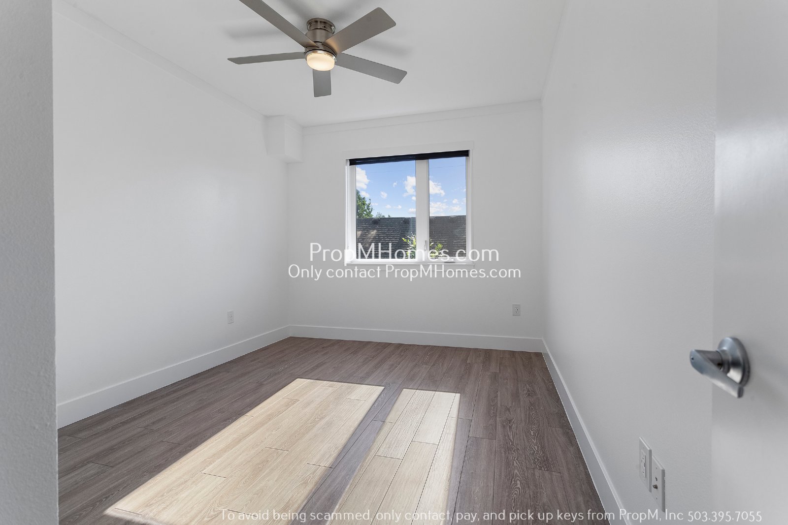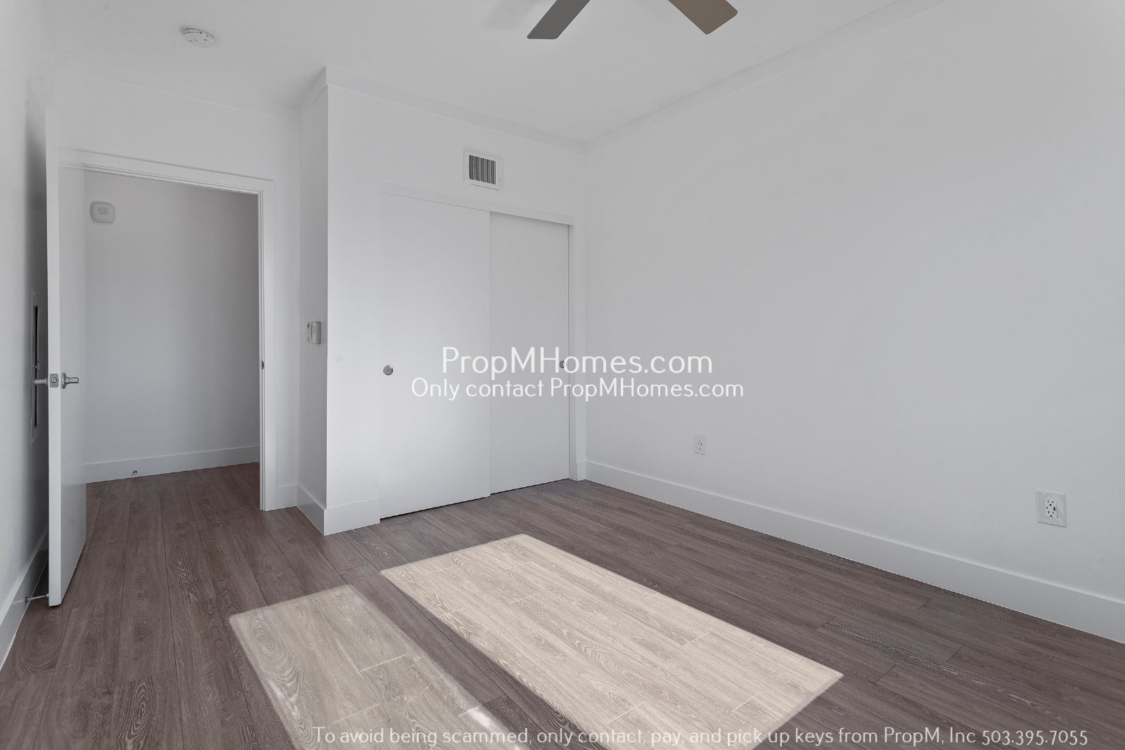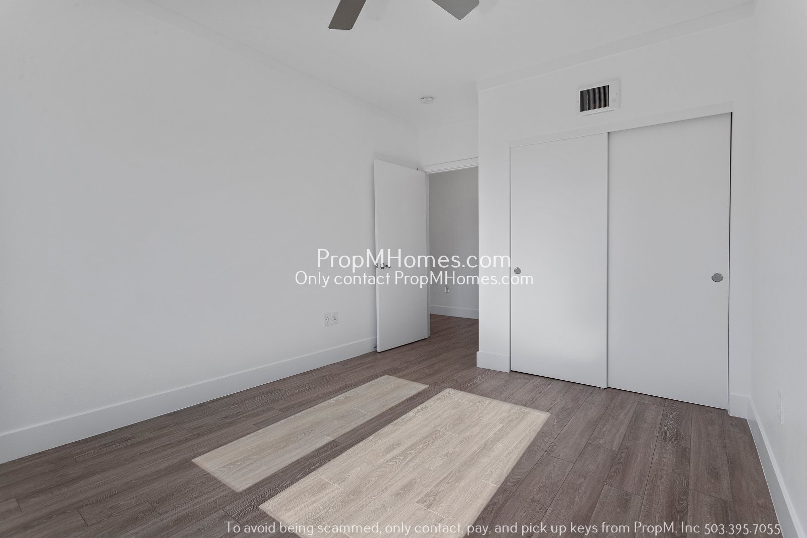 -Bedroom features an overhead fan, natural light, and generous closet space