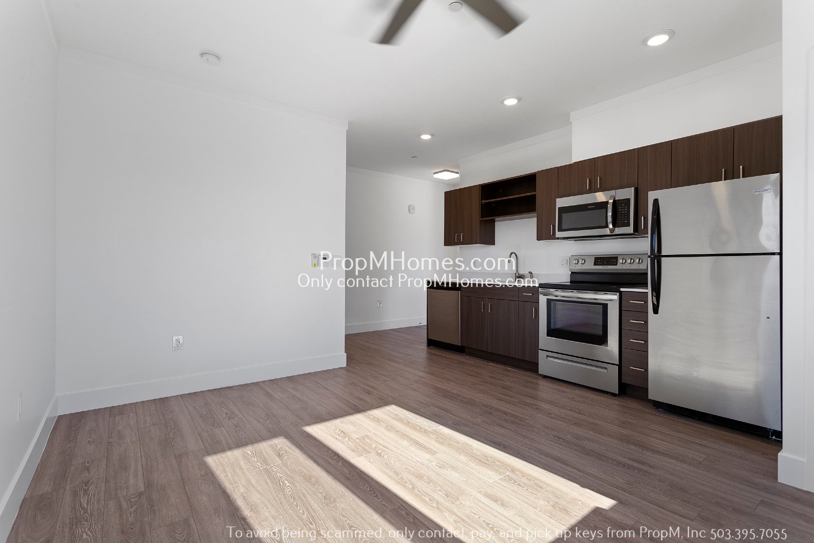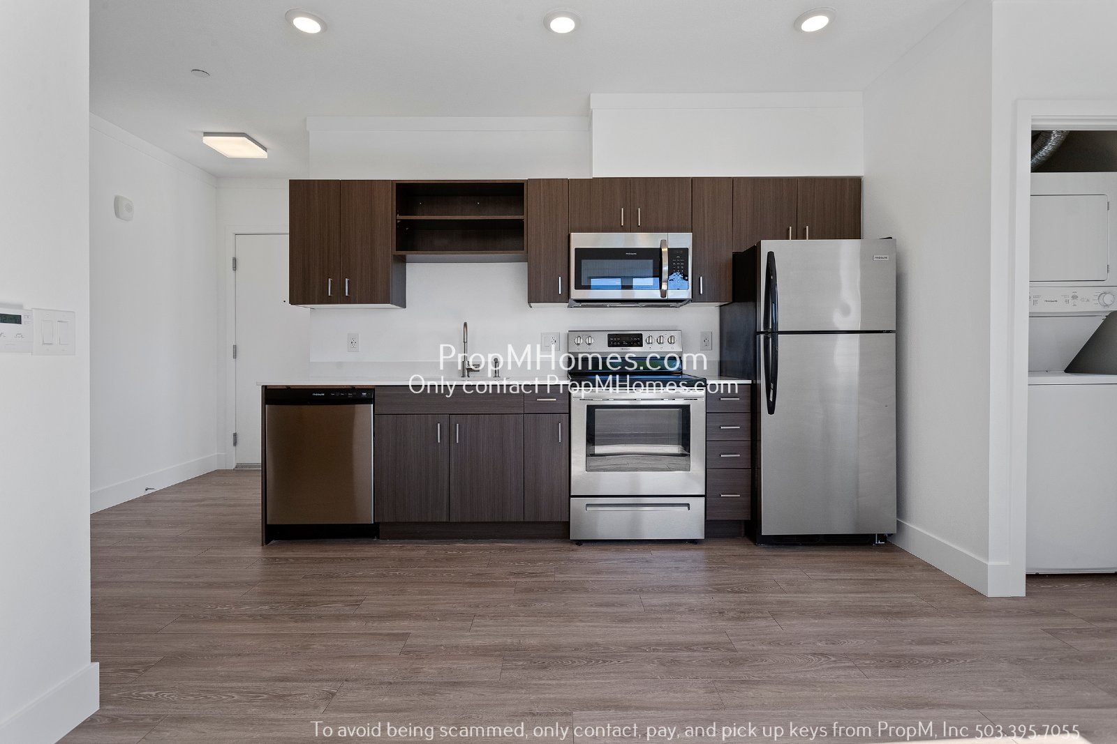 -Kitchen appliances include: refrigerator, stove/oven, dishwasher, and microwave