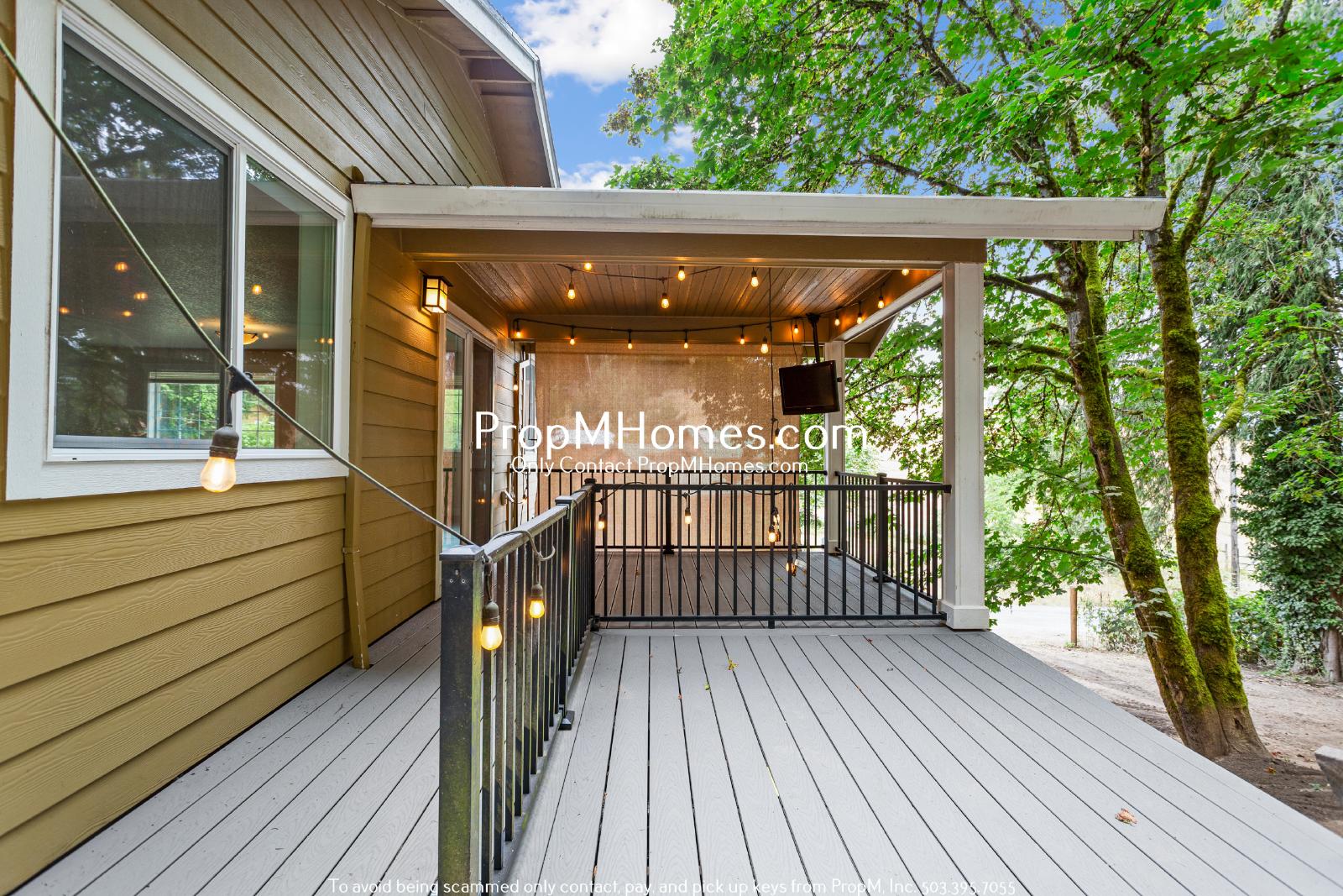 -Covered deck off dining area—perfect for morning coffee or evening gatherings