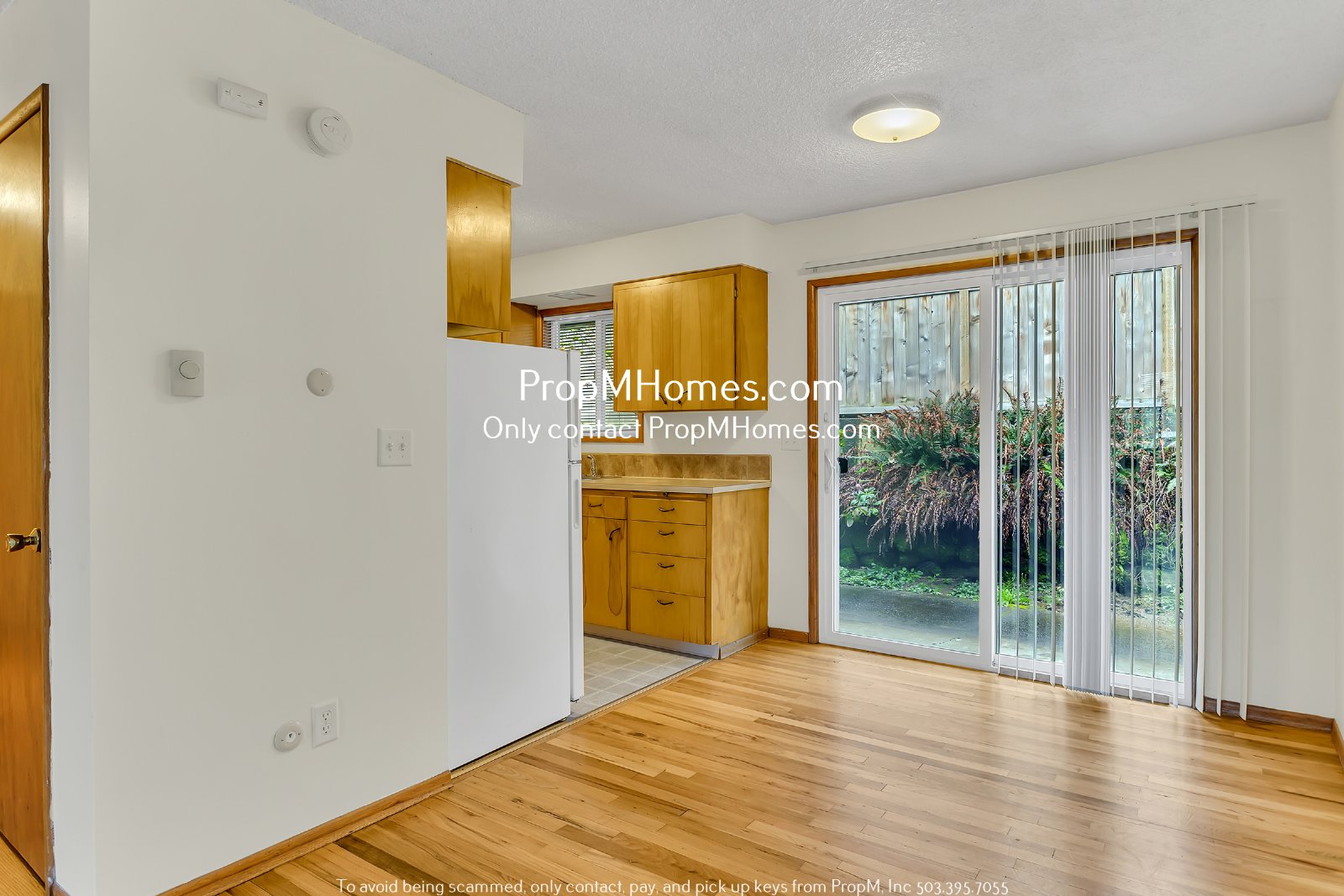 -Dining area with hardwood floors and sliding glass doors to a private patio