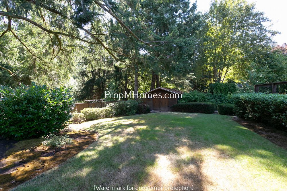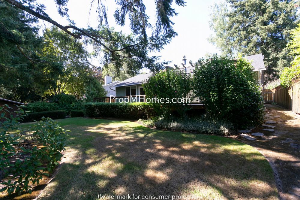 Expansive fenced backyard backing to Englewood Park and Fanno Creek trails