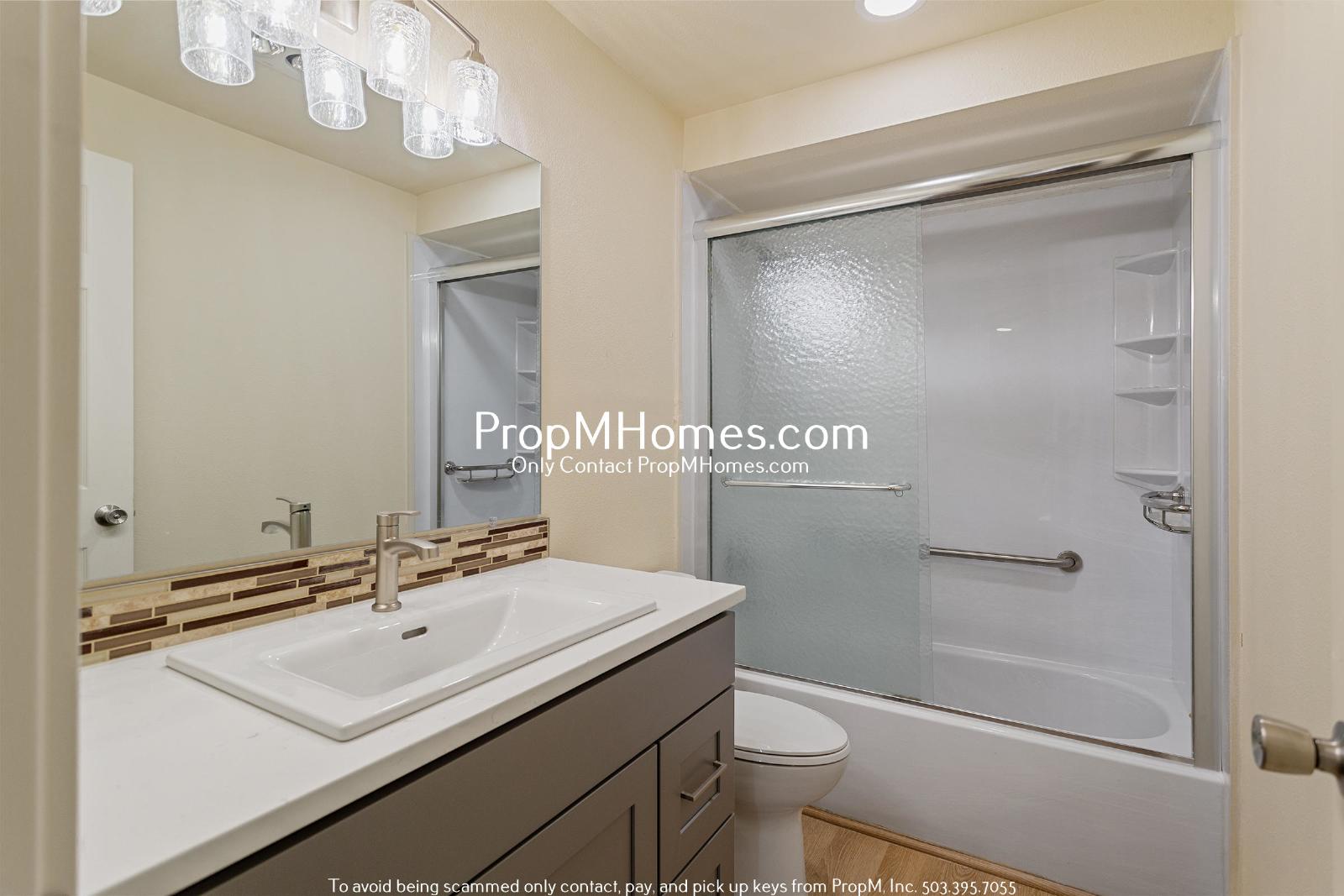 -Updated bathrooms with sleek vanities, tiled backsplash, and contemporary fixtures