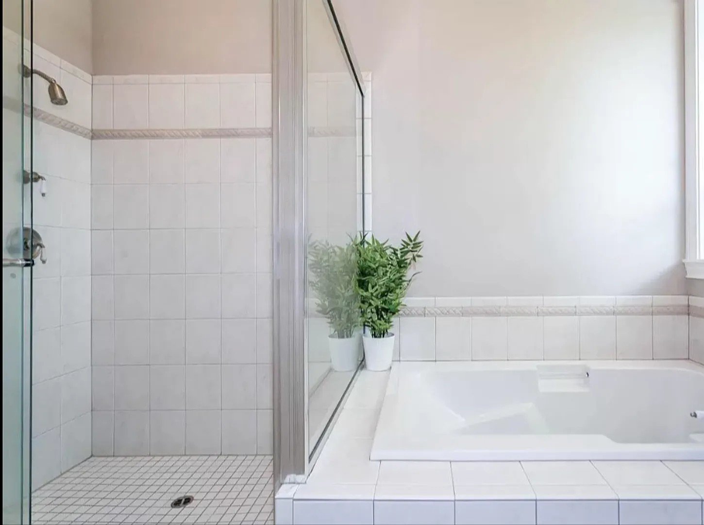 -Primary suite with an ensuite bath featuring a soaking tub and dual sinks