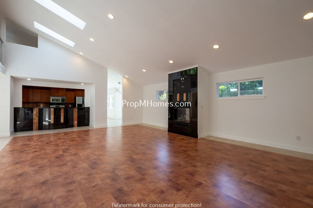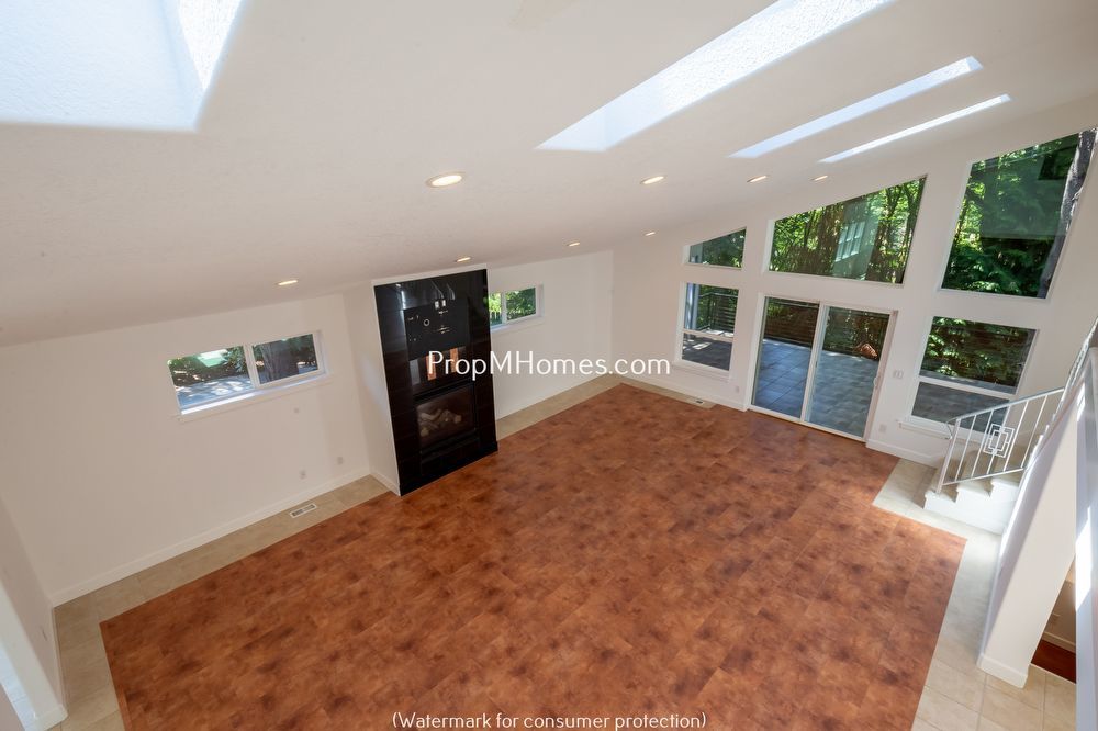 -Main living area with gas fireplace and skylights