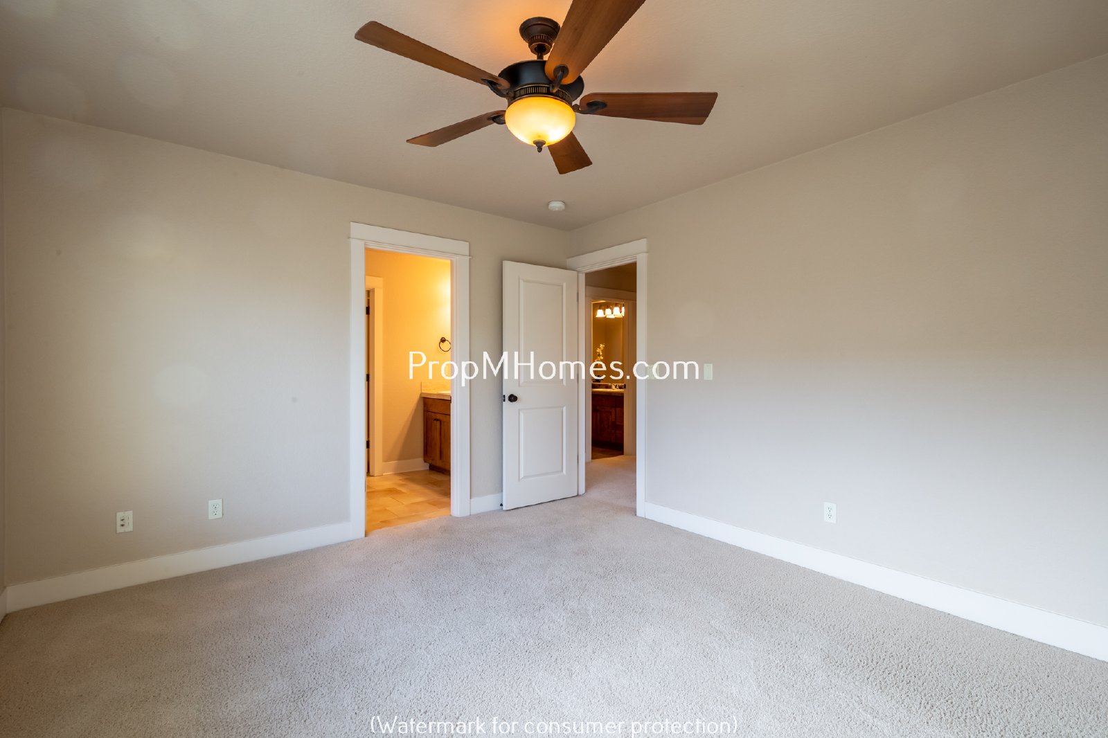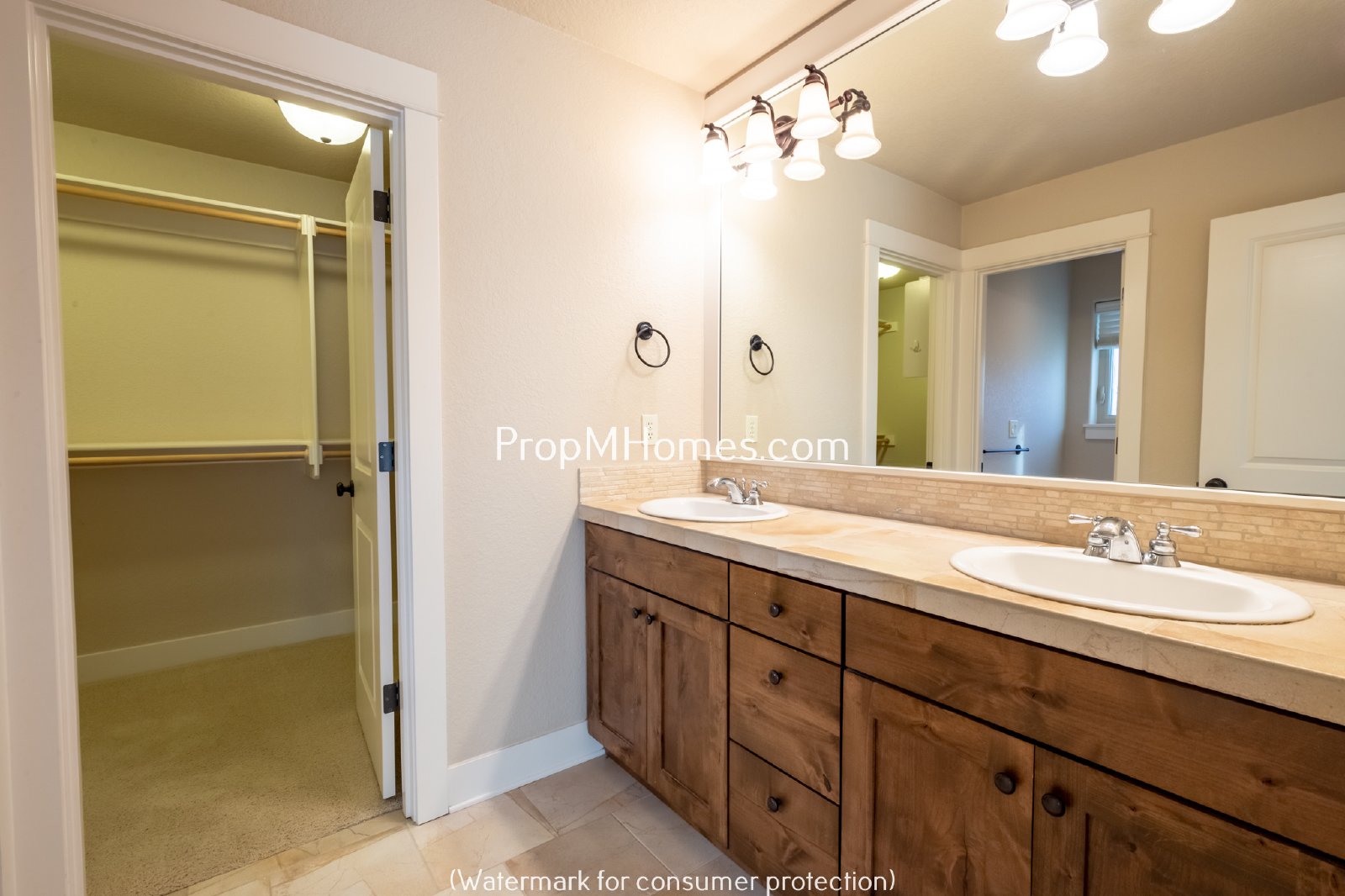 -En-suite bathroom includes dual sinks and walk-in shower